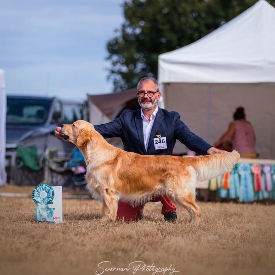 „Dieser Kerl hat sehr schnell die Herzen der ganzen Familie erobert. Er hat dieses gewisse Etwas, das ihn einzigartig macht. Stanley hat einen außergewöhnlichen Charakter, ist sehr ruhig, sehr intelligent und immer bereit, anderen eine Freude zu machen, mit einem Blick, der einen zum Schmelzen bringt. Wir sind verrückt nach ihm. Stanley zeigt unter allen Umständen große Gelassenheit, er hat vor nichts Angst, er ist weder ängstlich noch hyperaktiv. Ein echter Golden Retriever mit einem echten Golden-Retriever-Charakter! Stanley hat einen großartigen Stammbaum, und seine ersten Babys zeigen bereits sehr gute Eigenschaften (ausgezeichneter Körperbau, mit kräftigen Rücken, wunderschöne Bewegungen, die zu ihrem perfekten Körperbau passen, sehr hübsche Köpfe, sie sind sehr vielversprechend. Er vererbt seinen großartigen Charakter, was uns natürlich sehr freut.“